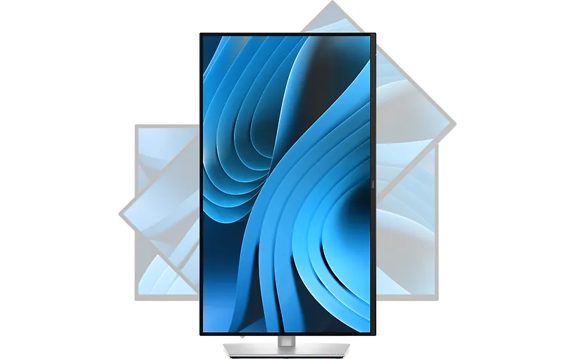 Dell Pro 27 Plus P2725D sisältää kattavat ergonomiset säätömahdollisuudet. Jalusta tukee korkeussäätöä, kallistusta, sivuttaiskääntöä sekä pivot-toimintoa, jonka avulla näyttö voidaan kääntää pystyasentoon. Pystyasento on erityisen hyödyllinen esimerkiksi ohjelmoinnissa, dokumenttien käsittelyssä ja verkkosivujen lukemisessa.